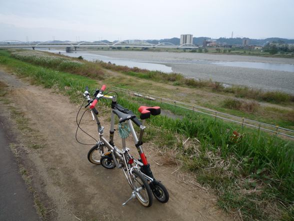 関戸橋付近から多摩川沿いをポタります。僕のA-bike cityは最初は気持ち良く走っていたのですが走行開始20分位で段々キツくなってきました!共にシングルギアではありますが、やはり14インチと8インチの差でしょうか。ぬ〜。段差越えには当然神経使います。途中ミスターの趣味の世界に御立ちより。