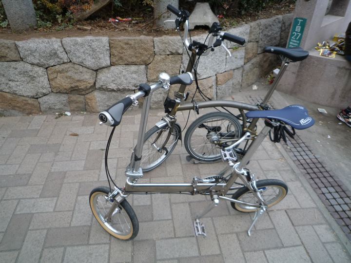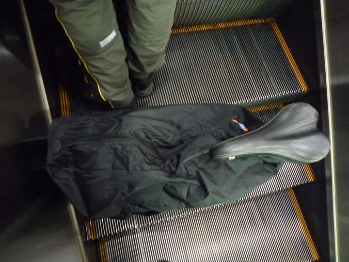 今回はしぶやさんの輪行カバーで。今回の様なパターンでは、これが一番使い勝手がいいです。この状態で運ぶ時は、サドルもセライタフライトより重くてもグリップ付き純正サドルが断然いいですね。カスタムも段々元に戻るかもしれません。素のBromptonってやはりそれなりに理由があってそうなってるんだなぁと感心してしまいます。いじる必要ないのかも。