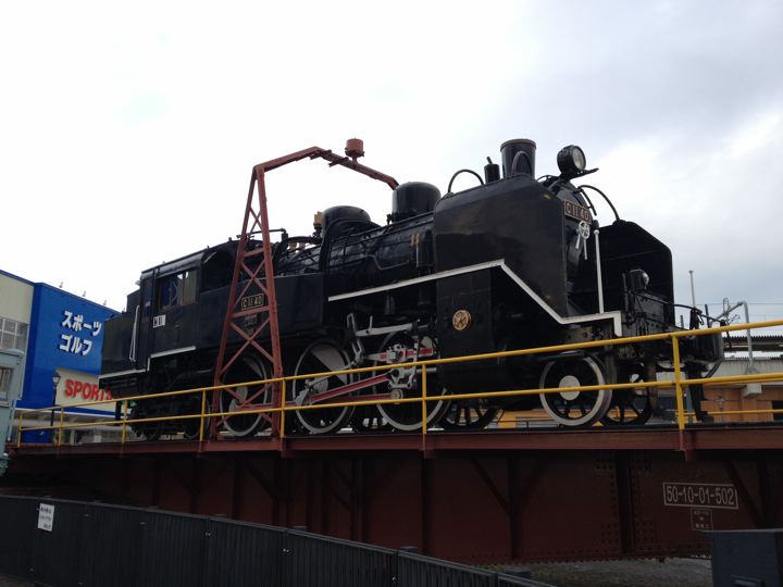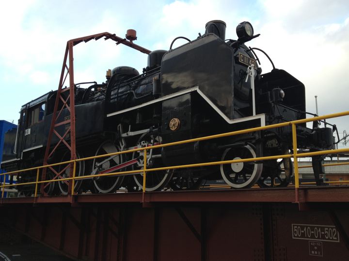 電車の好きなミスターの為に駅前にあった転車台に乗ってるSLを撮影する事に。