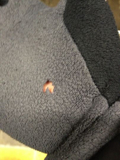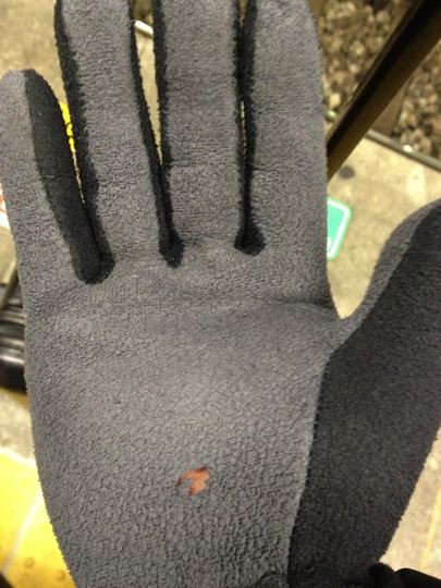 昨日買ったばかりの、298円のスマホ対応のびのび手袋にも穴が!ぬ〜