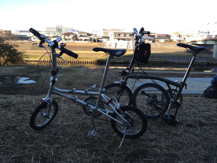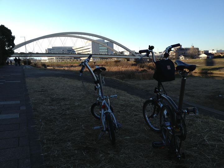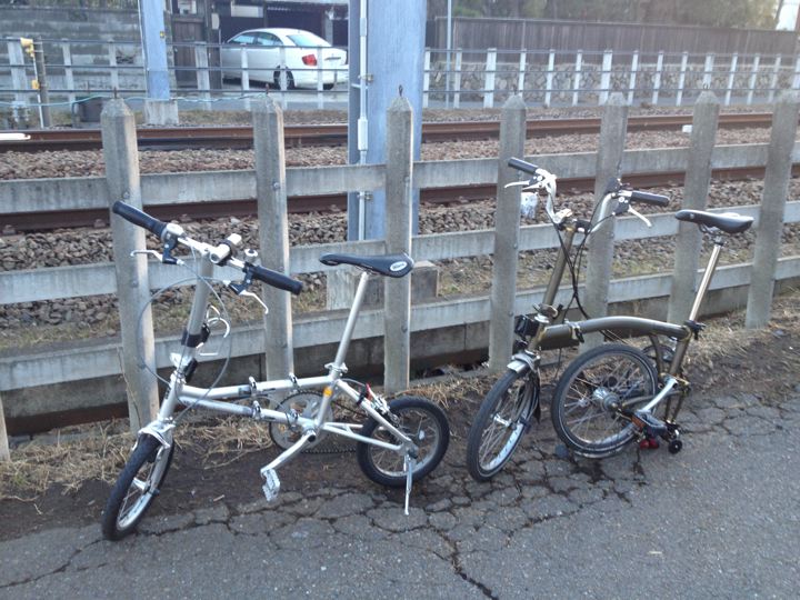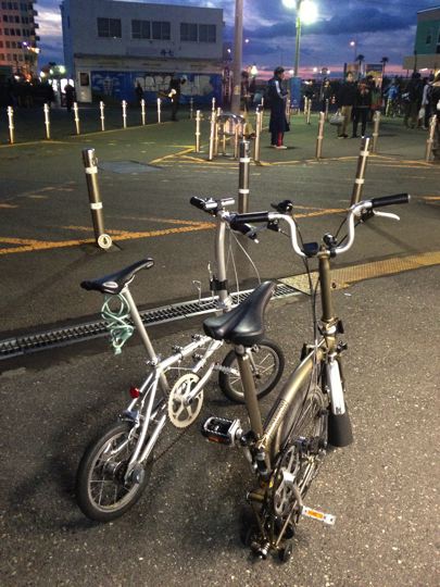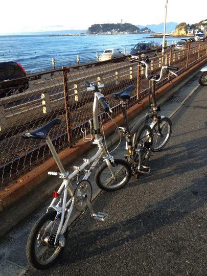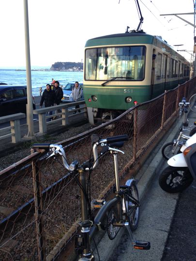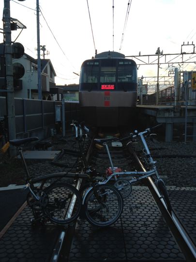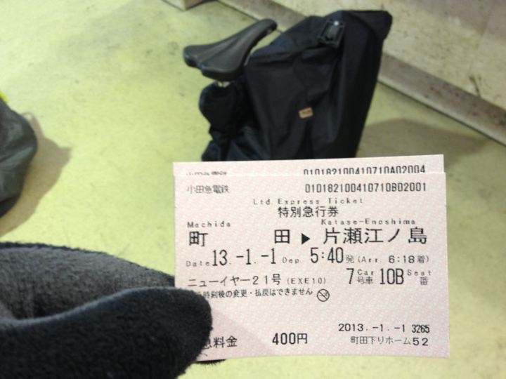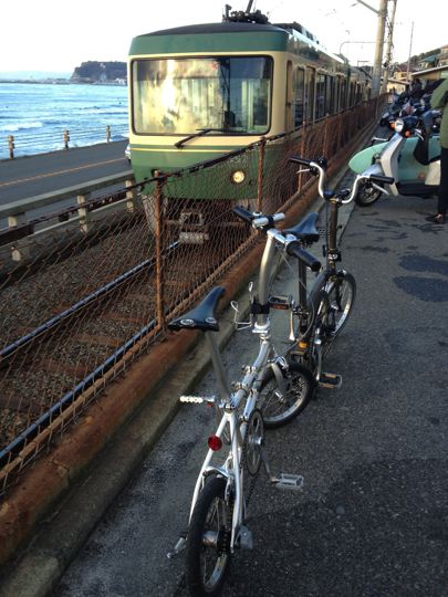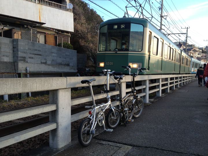 やはり2013年のスタートも、ミスターと僕ちゃんで元旦ポタリングへ!ミスターはYS-11GX、僕ちゃんはTHE BROMPTON M10L RAWで、江ノ島〜鎌倉〜新横浜〜鶴見川方面へ!GO!まずはVW Golf2 GLI明星号で町田へ。そこからロマンスカーのニューイヤーなんちゃら号で輪行して江ノ島へ。もちろん目的は今年も初日の出と初詣なのです!