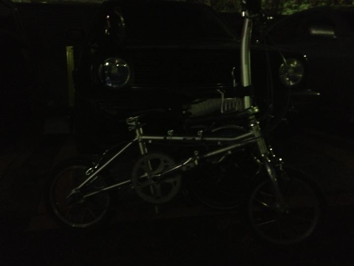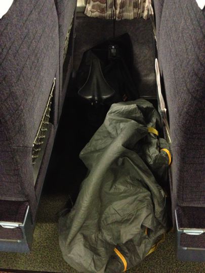 座席の間は丁度良い自転車置場!