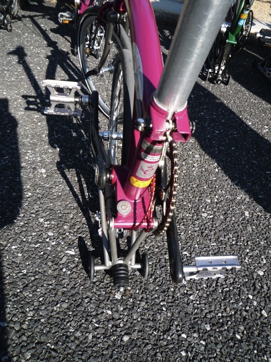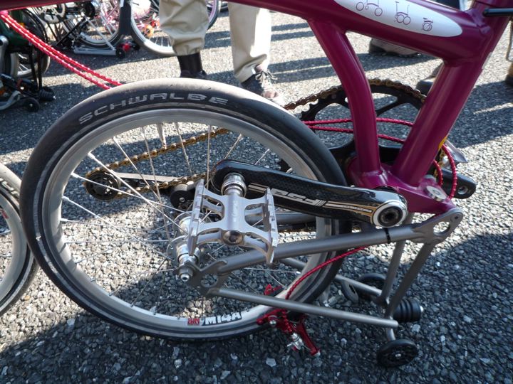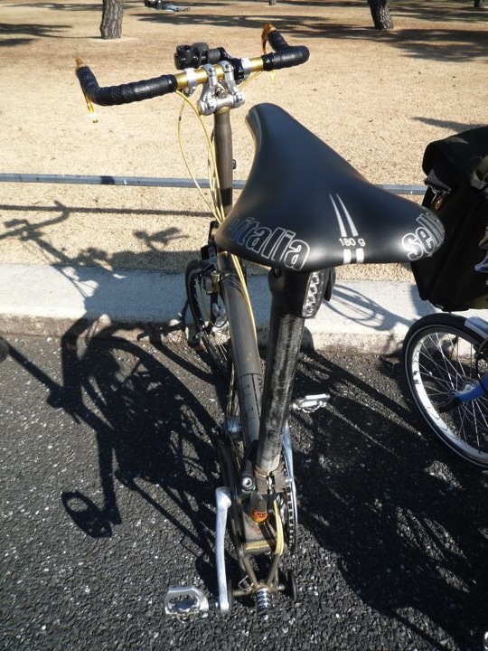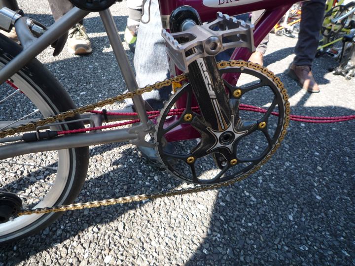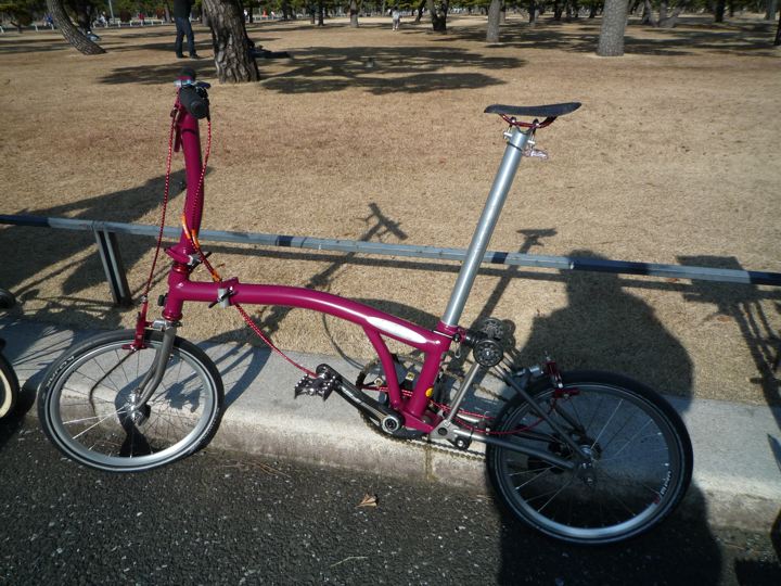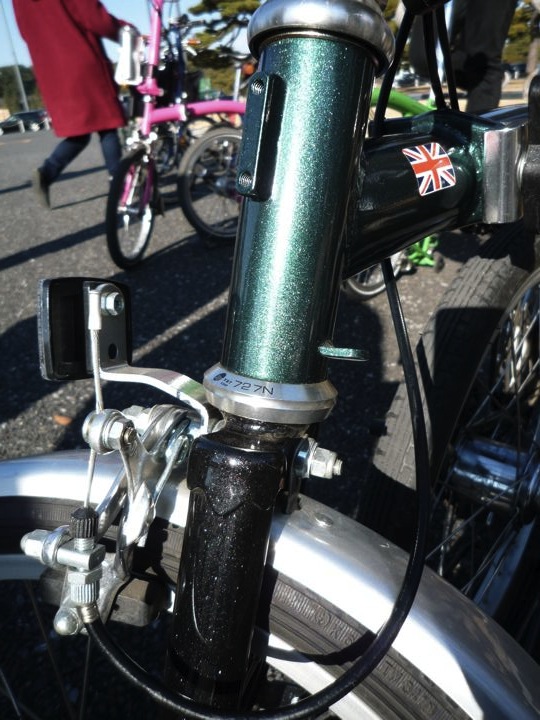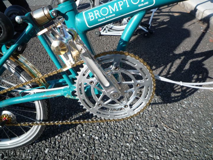 横浜さんの台湾Brompton。すごくキレイ!特にフレームのラメ入りメタリック塗装はなんとも美しい!昔のあの部分やあのパーツはこうだったのか。とても大事にかわいがられているご様子。