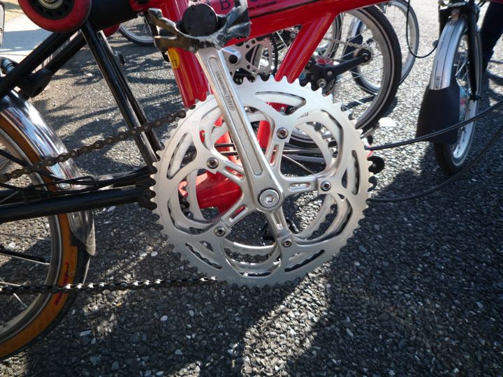 こちらも!しかもフロントディレイラーがついてない!外のでかい歯がチェーンガード代わりになるのか?しびれゔぁ!