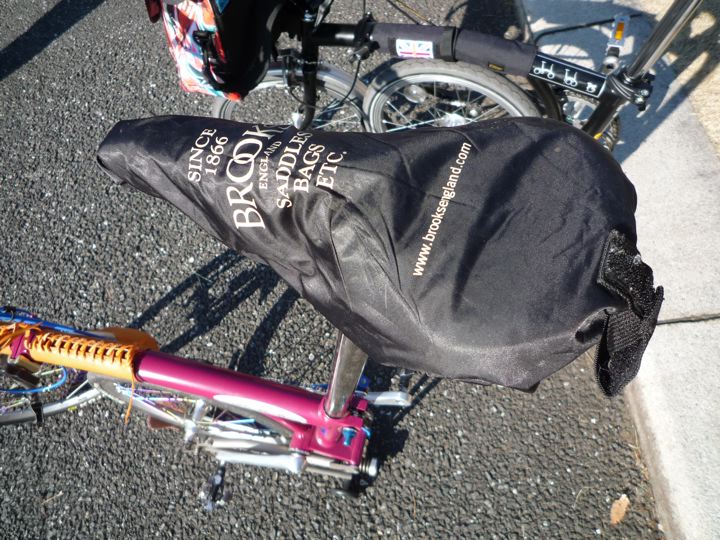 凄いワイヤーの色。そしてこれがBROOKSのサドルカバーか。なんでカバーするんだろう?