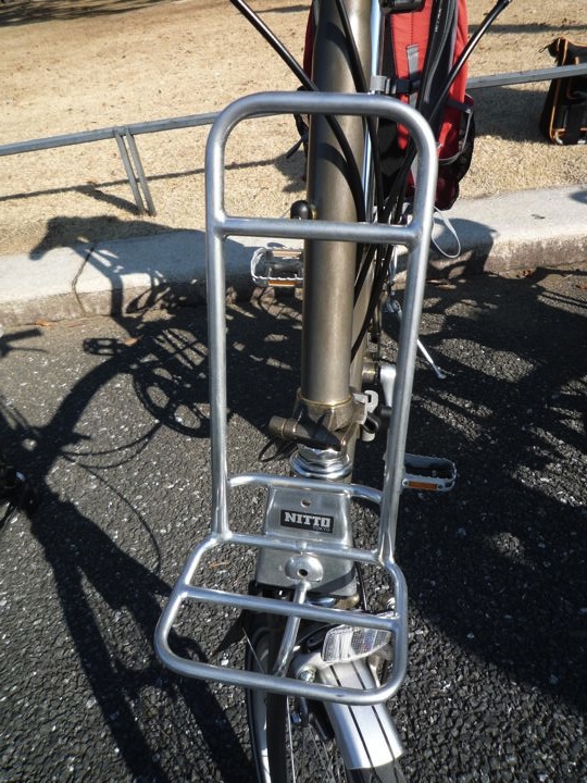 和田サイクルオリジナルフロントバッグが!思ったより質感がいい!ほ、ほすぃ〜!NITTO特注の和田サイクルオリジナルフロントキャリアは確かにころがしやすそう!なるほどねぇ。