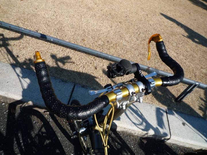変わったMハンドルにバーエンドバー。ブレーキレバーもイカしてる。