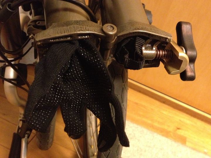 先日折角発見したばかりの、チェーンがはずれた時用の「黒いプチプチ軍手」を出す。