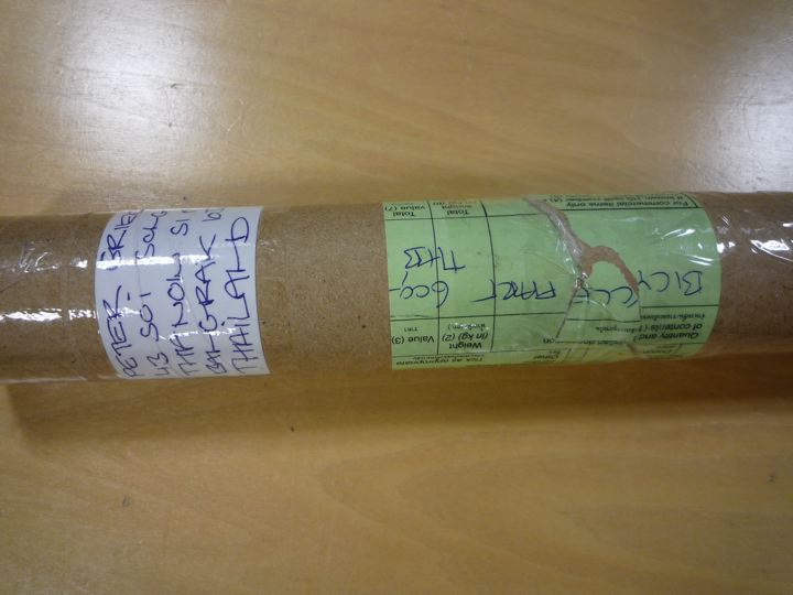 前回とは違って、シートポストらしい筒で到着。よく見ると出荷先はタイランドとなってます。