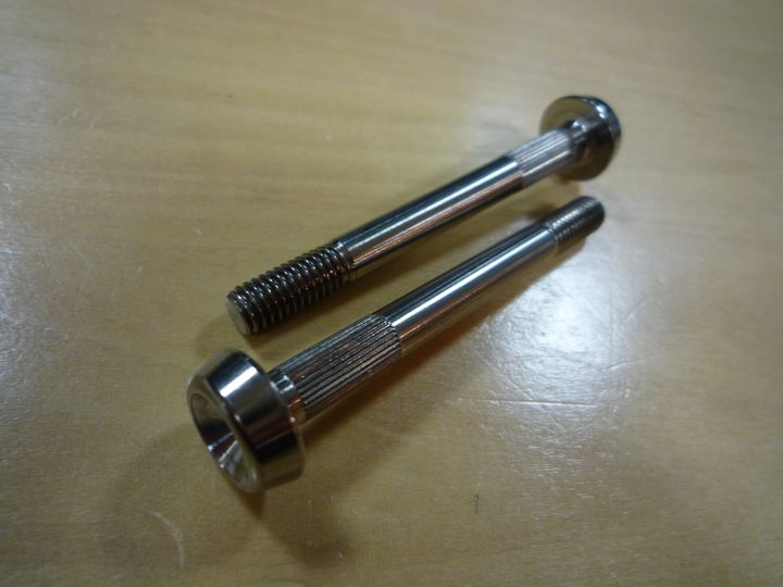 そして、ローロさんのチタンボルトセットにはすでに含まれていますが、今まではなかった、サスペンションブロックの軸もチタンで登場。これが今回の最大の目的でした。