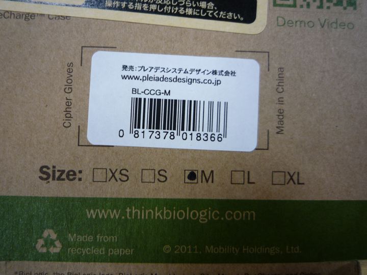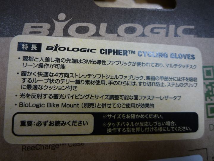 元々手袋嫌い人間だったのですが、8年前にNYの現場で寒過ぎて耐えられずについ買ってしまった愛用のナイキのフリース手袋についに穴があいてしまったので、折角だからBrompton乗る時用のサイクリンググローブでiPhoneのマルチタッチスクリーンに対応しているものをず〜っと探していました。色々調べましたが、結局意識し出してから最初に目に留まったサイクルモード2012のternさんのブースで発見したBioLogic社さんのCipher Cycling Glovesをチョイス。もう一度現物を見たかったのですがどこの自転車屋さんにも置いてません。仕方なくAmazonさんの最安値でポチる事に・・・。