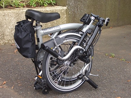 現在購入出来るあらゆる折りたたみ自転車を調べ尽くしました。その結果、最終的に辿り着いたのはこれ!イギリスはロンドン郊外のブレントフォードという静かな街で、英国職人が手作りで生産しているブロンプトンなのだ!1975年にアンドリュー・リッチーのスケッチからスタート、1988年に最初の市販品を出荷開始。一時期、台湾にてライセンス生産がされていた事があった様だが現在は100%ブレントフォードの工場で作られているとの事。20年以上同じデザイン設計で未だに世界中で愛され続けているブロンプトン。早速試乗してみた訳だが、BD-1が戦闘的でスポーティーな乗り味に対して、なんとも、のほほんとした普通のソフトな乗り心地!ロングホイールベースからくる直進安定性とクロモリのねばっこいしなり感。適度にクラッシックでお洒落なデザイン。15秒ほどで超コンパクトに折りたたみ組立が出来る見事な機構。折り畳んだ時の美しさ。豊富なオプションパーツ類。すべてが完璧なのです。そしてブランドに弱い僕ちゃんなのでした。
