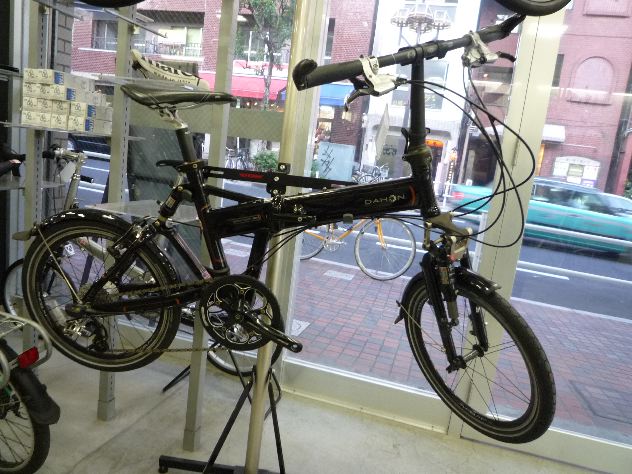 ヨーロッパばかりではなく、ここでアメリカに飛びます。DAHONでございます。米国カリフォルニア州に本社をおく折り畳み自転車の専業メーカー。1975年オイルショックを機に中国系アメリカ人デヴィッド・ホン(David Hon)博士により開発研究が行われ、1982年に第一号製品出荷、今日に至る。自転車の製造は台湾で行っていたが、2000年ごろから低価格帯商品の生産は中国本土に移った。オーソドックスな折り畳みの機構は使いやすく、頑丈であるとされる。中国系アメリカ人のDr.honさんは、かつて軍需産業に関わっており、その仕事に嫌気がさして立ち上げたブランドだそうです。