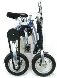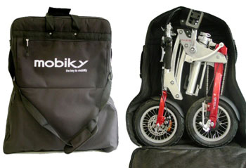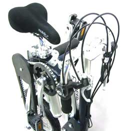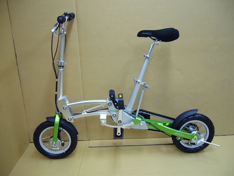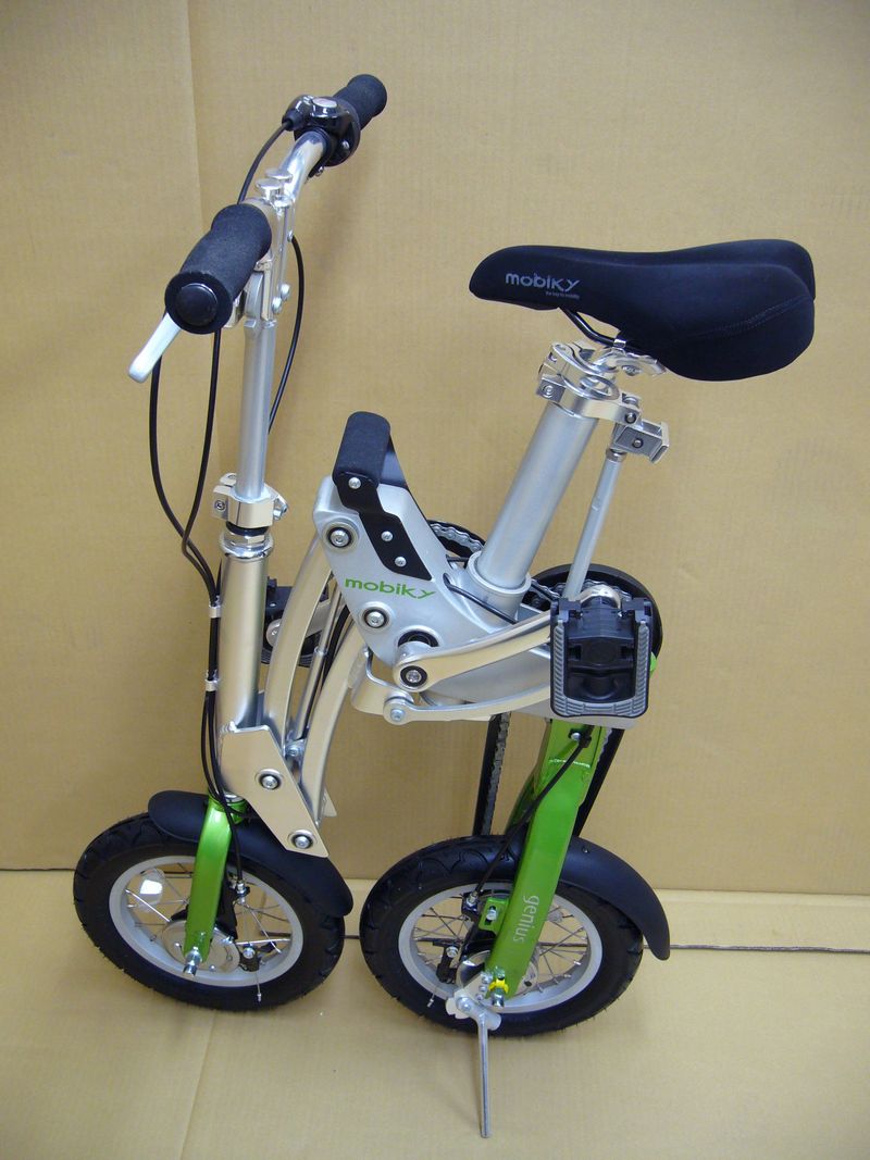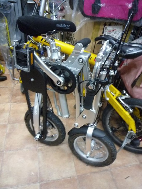 ALLアルミシルバーがBESTカラーでしょう!思わず衝動買いに走りそうになるところでしたが、現在は2010年モデルが入荷待ち状態でいつ入ってくるかわからないとの事でした。現品でいいから売ってもらおうか!むむむ〜これほし〜!と思いながらボディをスリスリしながら少し持ち上げてみたんです。すると!なんとぉーっ!おもて〜っ!こんなに小さいのに〜っ!そうなんです!重いのよコレ、すこぶる。フランス生まれのお洒落な折りたたみ自転車MOBIKY は、フレームはAluminium 6061、タイヤ12インチで重さ14.4Kg日本仕様は特別いい仕様になっているらしい。標準小売希望価格は¥80,000円(税込)メカ好きのあなたならどうします?