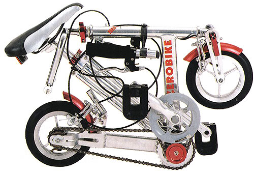 ハンドリングは相当クイックそうですが、2枚のギアでそこそこスピードも出るみたいです。当時は多段変速化がはやっていたみたい。折り畳むとこんな感じ!えぐい!