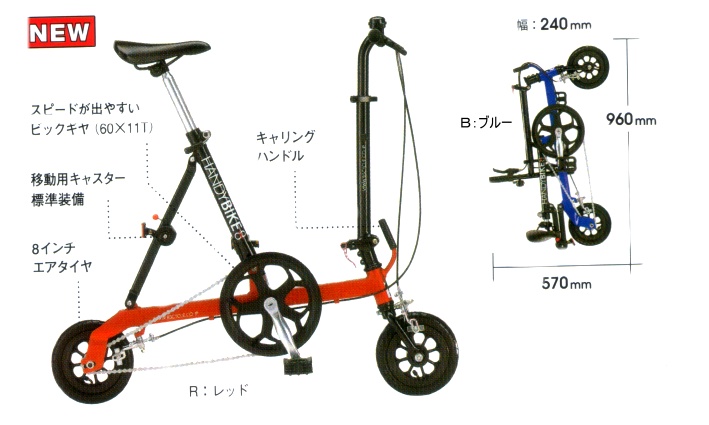 そうなんです!ハンディバイク8なのです。ちょっと前にブームがあったみたいですが、今は残念ながらブリジストンからは発売されていません。ドイツのご本家のホームページは残っていますが・・・。その価格の安さから、当時は格好の改造マニアのベース車両になってた様で、ハンディバイク改造で検索するといっぱい出てきます!ハンドル交換、サドル交換、グリップ交換は当たり前。多段化したり、中にはフレームをカーボンで作っちゃった人まで!