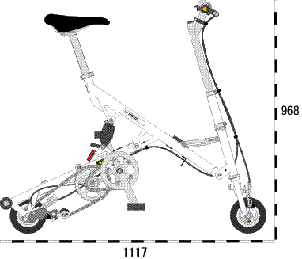 使用しないときは駐輪スペースのない住居でも玄関や部屋の隅にB4用紙サイズ程度の面積があれば保管することが可能。「最小床投影面積を実現」しつつ、普通にのれる自転車。
