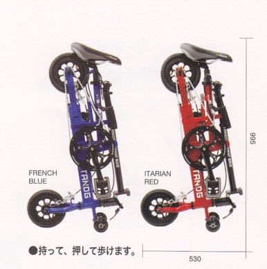 大都市の自動車平均時速は約20km/hだ、とも言われている。荷物を運び、人が移動すると言う交通機械構造物の中で、自転車は唯一、エコロジー・エクサ サイザー・ヒューマンスポーツだ。トレイン・サブウェイが網の目のようにはりめぐらされた大都市、TANDG Subway Bikeは、貴方を目的地・交通機関・駅~駅をトランスポーションさせます。人の歩くスピードは約4km/h、TANDG Subway Bikeは~16km/h、わずか10分で2.7kmをトランスポート! サブウェイへの持ち込みまでアッセンブル←→フォールディングは、わずか10秒以内!専用カバーをかぶせ In Train. 驚きのコンパクト性・ステーションロッカー、事務所でも、旅行でも、ユーパックでも、もちろん貴方の住人としてもOK!