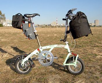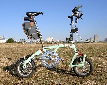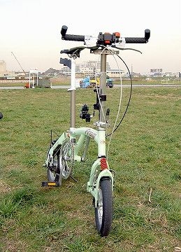 どうやらハンドルしか折れないらしいが、リアキャリアを足にして立つそうです。