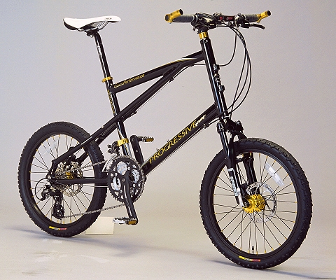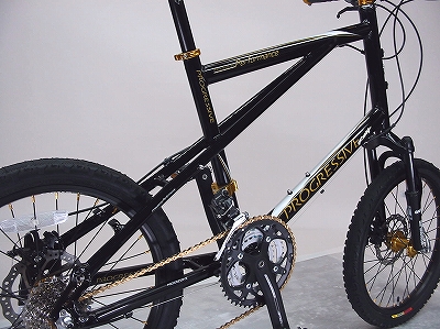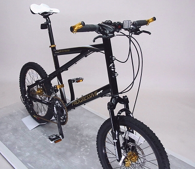 そうなんです!折りたたみ自転車ではないので番外編としますが、これは結構いいですねぇ。だいたい今更ですが、折りたたみ自転車といっても、実際どのくらい折り畳む事があるのでしょうか?僕なんかめんどくさがりなので、意外と折り畳まないかもしれません。ならばフレームの剛性を考えると折れない方がしっかりするわけで。そこでこんな美しい自転車を発見!PROGRESSIVE RACING CX-205-MTです!ミニベロとMTBの中間くらいでしょうか?なかなかかっこよろしいんです!