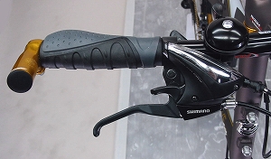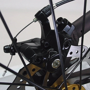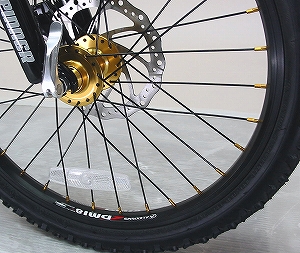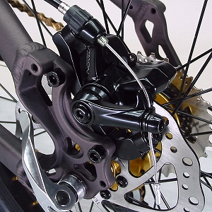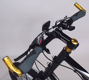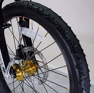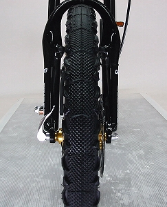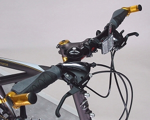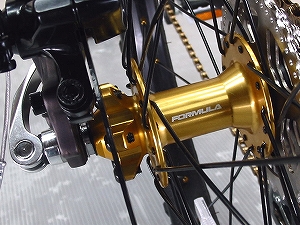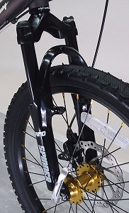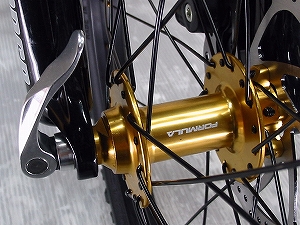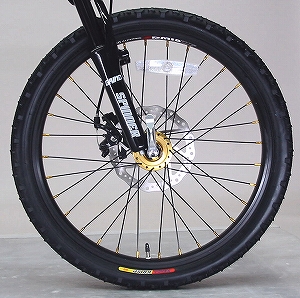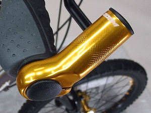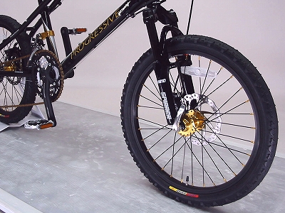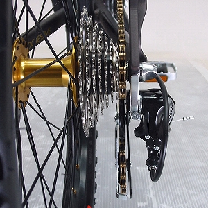 どうですか!なかなかかっこいいでしょ!マウンテンバイクライクな雰囲気とゴールドパーツで、これほど鮮やかにおしゃれに決まったミニベロは他にはないのだ!