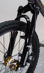 20インチのぶっといタイヤ、フロントサスペンション、前後ディスクブレーキ、外装24段変速、重さ12.7Kg で、気になるお値段は、