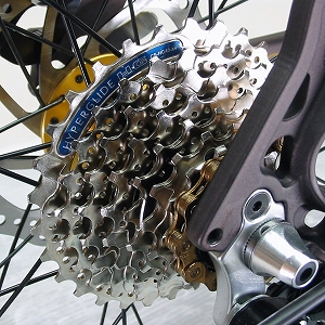 CXシリーズの2010年モデルとの事。太めのセミスリックタイヤにディスクブレーキとフロントサスペンションを搭載し、街中を快適に格好良く走るのだ!今年は特にバーエンドバー、ヘッド小物、シートクランプ、ハブなどにゴールドが採用!男らしい力強い仕上がりなのです!単なるミニベロでは満足しない、遊び心を存分に発揮したい方にお勧め!折りたたみではないけど、クイックレバーが、フロントとリア共に採用されてるので、車に積んで持ち運ぶことも、輪行バッグで電車に持ち込むことも可能!