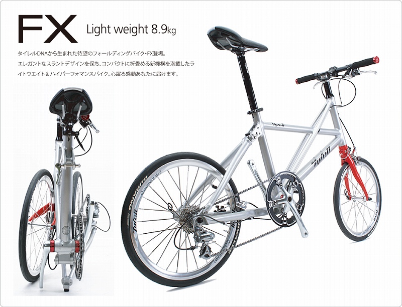 タイレルのDNAから生まれたフォールディングバイク!カドワキ製パウダーコーティングを施し、エレガントなスラントデザインはそのままに、コンパクトに折り畳める新機構を搭載したライトウェイト&ハイパフォーマンスバイク!フォールディングバイクの新機軸を切り開くタイレル渾身のバイク!との事!