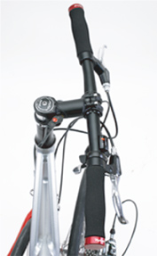 QRを緩めと、ステム・ハンドルが90°ターンし、フレームに沿ってコンパクトに収納。