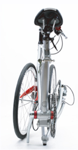 工具不要で、わずか数十秒で折畳めるフォールディングデザイン。チェーンステーを180°回転させ、フォークを90°に折畳む。90°ターンするステム・ハンドルにより、高さ79cm、長さ87cm、幅35cmを実現。1,075mmのロングホイールベースの完成車サイズが、驚く程コンパクトサイズに収納。専用輪行バックもオプションで販売。