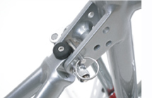 安全ピンを抜いて、ノブを緩めると、フォーク根元から90°屈曲する大胆なデザイン。折畳み後、安全ピンを再度挿入すると、ロック。耐久テストをパスした、高剛性フォールディングフォークは、タイレルの高い設計技術の証。