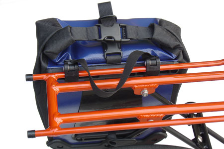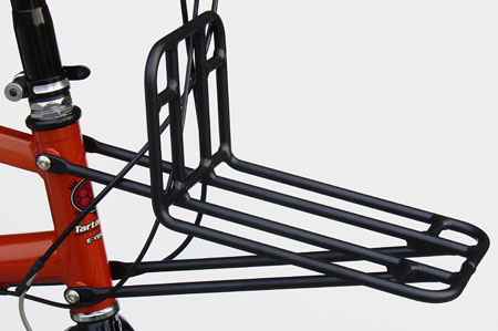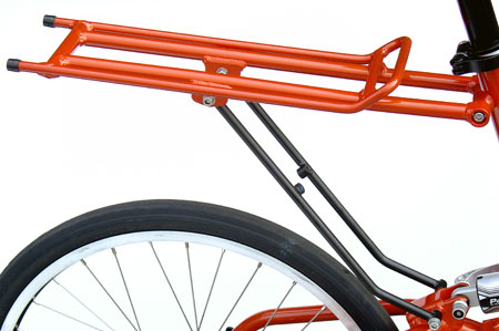 また純正オプションのリアキャリアを装着していてもリンク機構により、フレームの折畳みの操作を行うと、自動的にリアキャリアーも畳まれて、折畳んだ際のサイズは、キャリアー未装着の場合と変わりません。