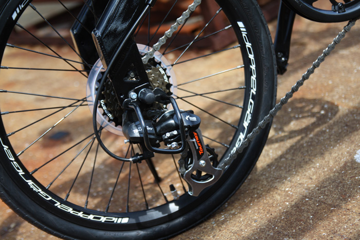 独創的なトライアングルフレームと簡単に折りたためる機能性、耐久性、デザイン性!前後プラスチックホイールに前後ディスクブレーキ!チェーンじゃなくてケプラーベルト!