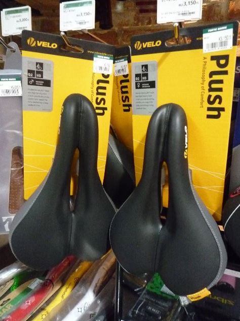 本当にそうなんです!5分乗るとお尻が痛い!早くも耐えられなくなりサドルを交換する事に。バイク技研さんの通販ホームページにも良さそうなのがあったのですが、やはり現物の質感をチェックし、触ったり押したりしながら決めたかったので早速有楽町のビッグカメラさんと東急ハンズさんへ。なるほどいっぱいあるね。でも自分の中ではほぼイメージは決まっていました。レザーでいくか?ハイテク素材か?