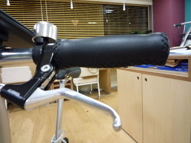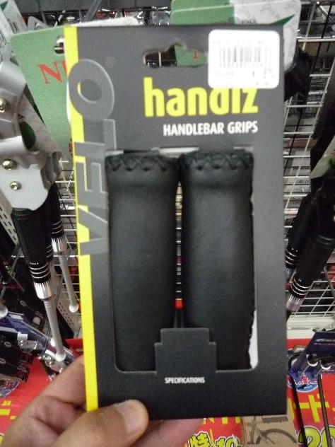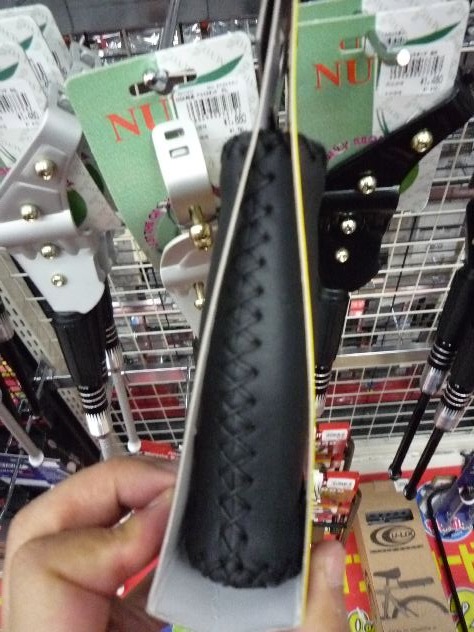 サドルを交換しにいったら、ハンドルのグリップが目に止まった。どうせなら体の接触する部分を一緒にカスタマイズしちゃおうかな?と思い立ち、少し安っぽかった純正のウレタンクッション製から今度は肌触り重視でレザー製に。これもまたなぜか偶然にVEROさんのものでした。