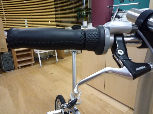 でも知らなかったんだけど、片側だけ、シマノのシフトレバー分グリップが飛び出しちゃってま〜す。右のはじっこがぷにゅぷにゅ。ま、いいか。