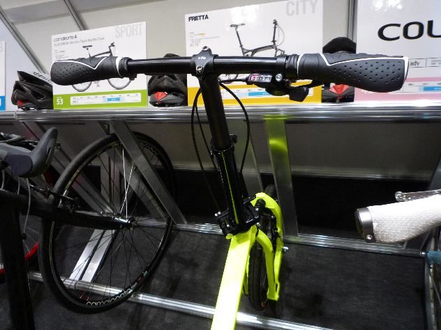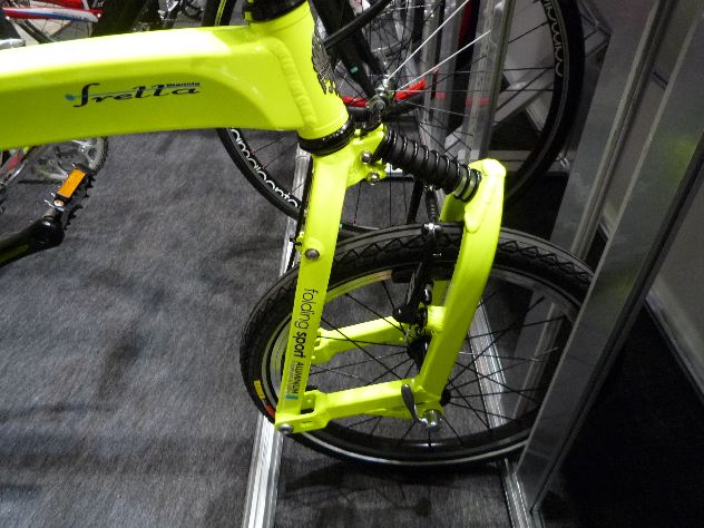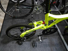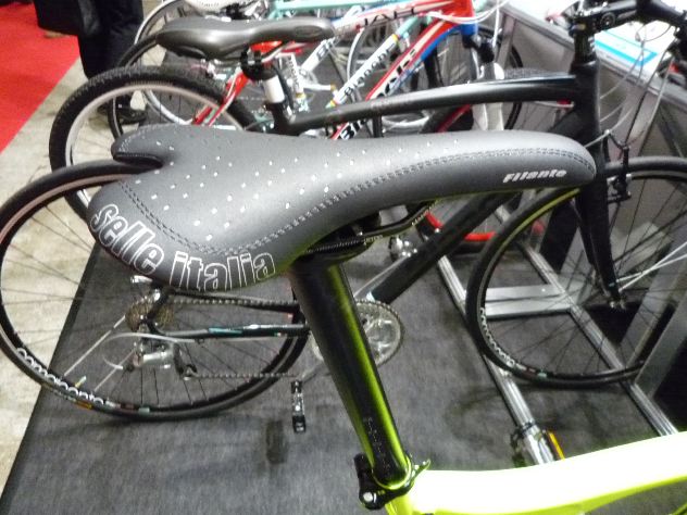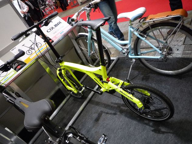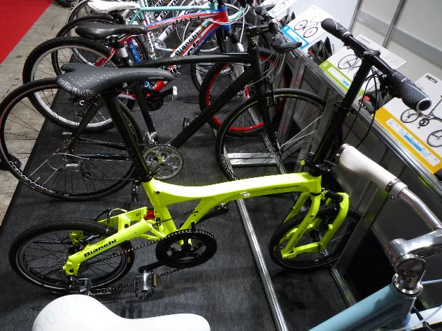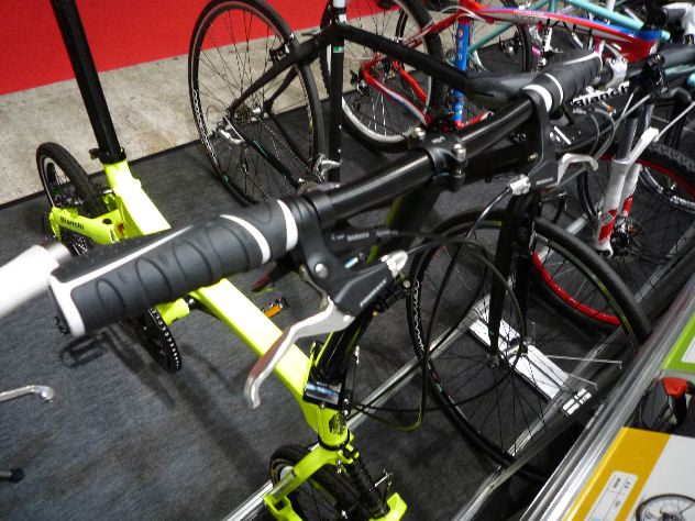 本題に入る前に、入口側のゾーンでいきなりこんなの発見!ビアンキ・フレッタの新色!まぶしいくらいに蛍光イエローちゃんです!今までbd-1とかでも、シルバーやガンメタなど、渋めの色が好きでしたがここまで発色がいいとなかなかなもんです!細かいパーツの改良点はよくわかりません。