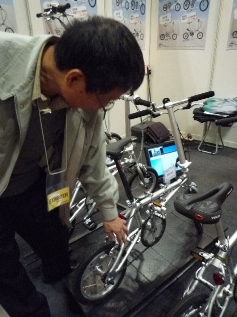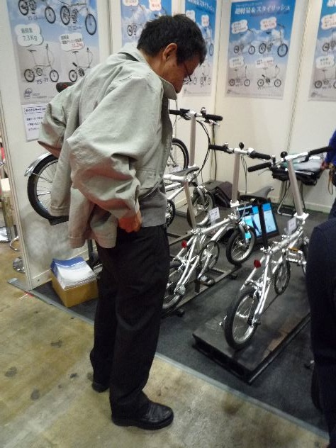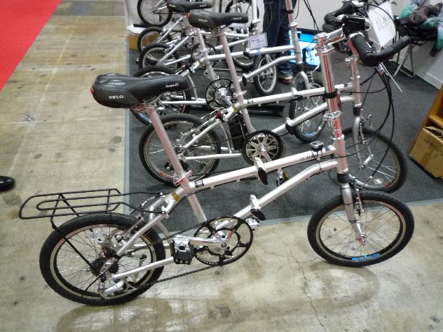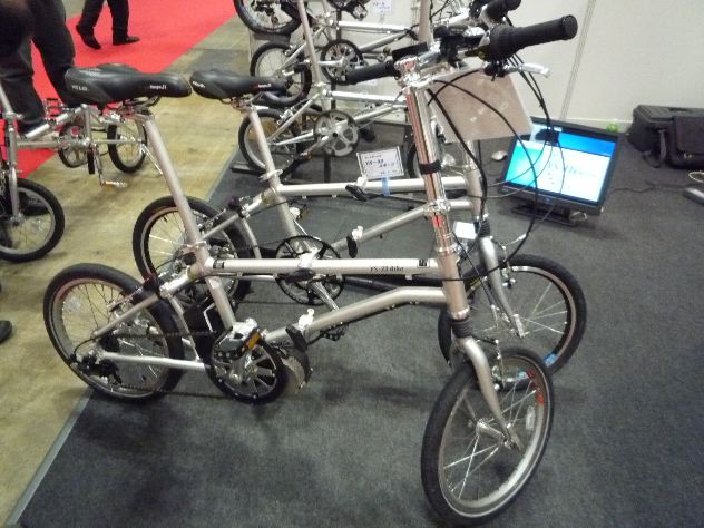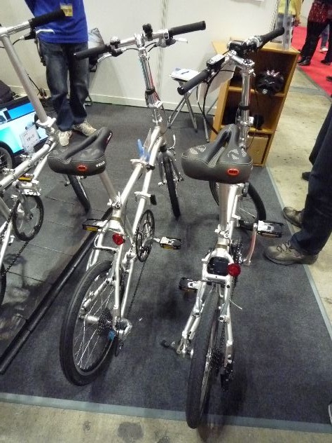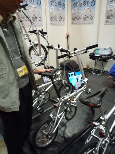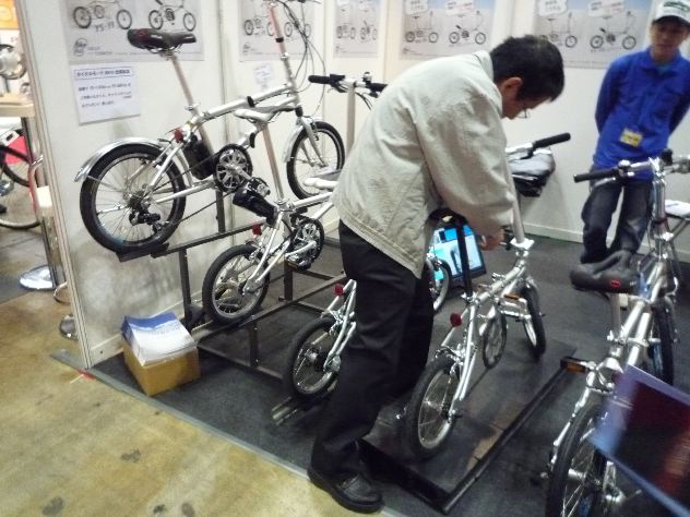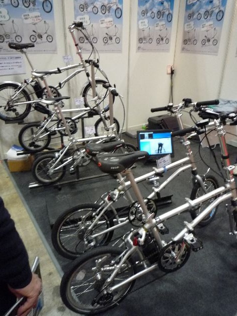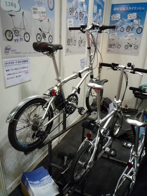 そうなんです!古くて保守的な自転車業界?と戦うベンチャー?のバイク技術研究所さんなのです!国産旅客機YS-11製造会社(日本航空機製造)に2年、トヨタ自動車に32年の開発経験を生かして、2005年に有限会社バイク技術研究所を設立し、エコロジー時代を先取りした次世代の自転車及び自転車部品の研究開発を行っている会社。自転車の開発はトヨタ自動車社内を含めて2010年で11年目。会社とゆ〜より白井社長そのものなのです!八王子のショールームに3回も行って、1回目はお休み。2回目はGolf5GTIから現在のマイカーGolf2明星号を代車として乗ってた時期にエンストしてしまい時間切れ。3回目は白井社長もいらして直々にYSのお話が聞けて即決してしまった記憶がございます。相変わらず他のブースの華々しさとは無縁で、じみ〜に愚直にやられてました!白井社長にも無事再会出来ましたし、社員?の若い子くんも目が輝いてましたね!こんな感じでYS軍団が並んでます!いっぱいYSでうれし〜!