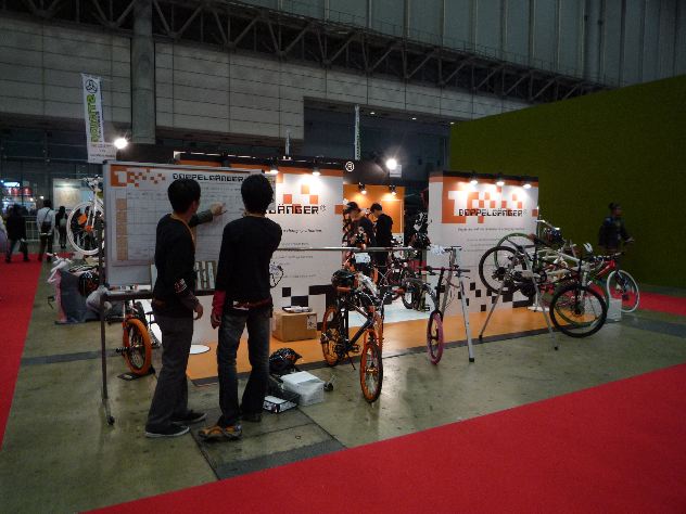 そうです!我が愛車、いやいや、我々の愛車、ドッペルギャンガー211assaultpack銀座2号でおなじみの、ネット販売の王様、企画力とデザイン力と中国製ロープライスで有名な、どっぺるさんなのです。オレンジのCIカラーは健在。ブースの全景はこんな感じ。