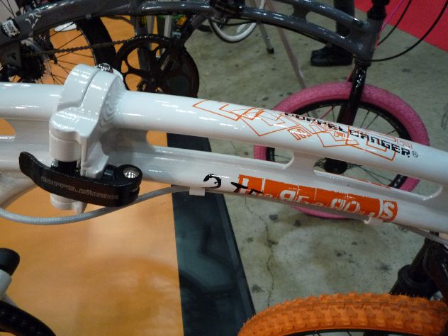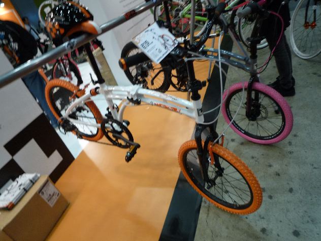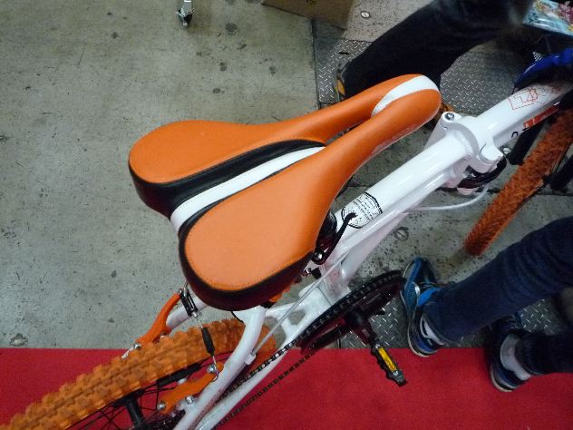 前後サスペンションの白×オレンジの憎いやつ!乗ってみようかと思ったけど、お母さんといっしょの少年が乗りたそうだったので我慢しました。やっぱりこれはガキんちょ用なのでしょうか?ハハハ。いつもの様にメーカーさんのコンセプトは凄い。