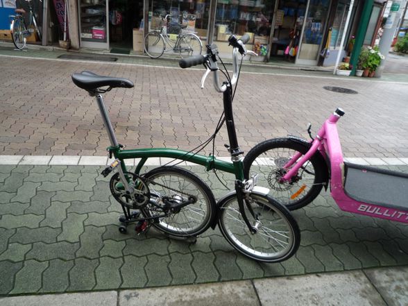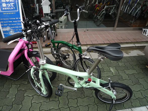 いるいる。憧れのBromptonが!とりあえず久々にこの最もBromptonらしいグリーンのM3Lに試乗してみた。実に優雅に気持ち良く走ります!