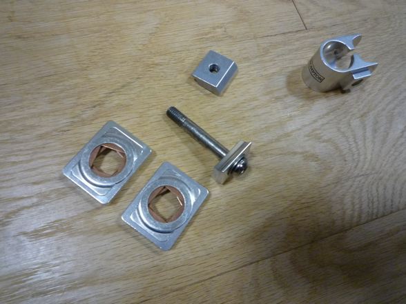 そうなんです!あまりいじりたくはないのですが必要最低限の実用的なパーツの取付なのです!今回もあまり多くは語らずに淡々とご報告。まずは、スローモーさんのリクエストによる、かごを取付ける為のアダプター。