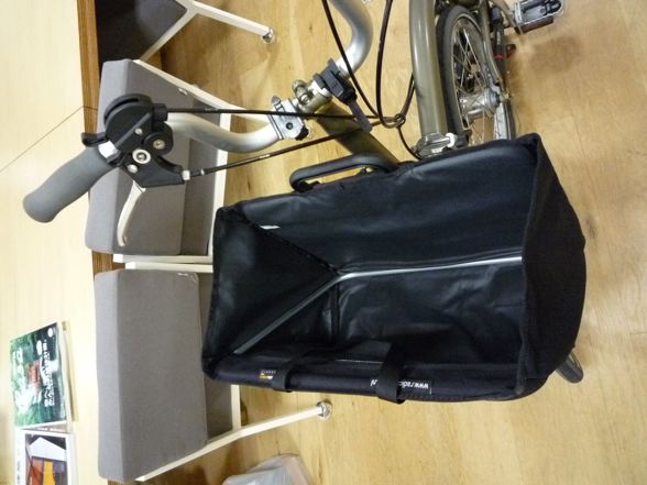 そして、折りたたんでも「カゴ」を付けると「犬の散歩」みたいに、ぶろくんをひっぱれるのです!か、か、かわい〜!そして、なんとゆ〜実用性なのでしょうか!