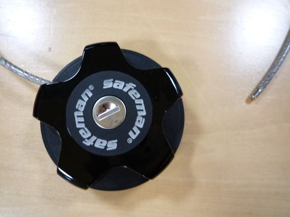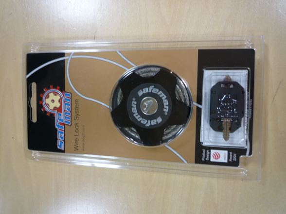軽さ。鍵をかける時の実用的長さ。見た目のデザイン。安いし。で、しばらく使っておりましたが、そしたらなんとぉーっ!ある日突然巻き取りのバネがバカになってしまいました。いくらなんでも短命すぎると思い、東急ハンズさんへクレームとご相談へ。新品に交換して頂きましたが、やはり強度やセキュリティー度がイマイチなんです。そこでもう少し太いワイヤーに、とゆ〜事で、結局、実はしぶやさんからも勧められていた、自転車以外の用途にも使えそうなsefeman(セーフマン)にする事に。ドイツのデザイン集団「TECTOY」が手がけるマルチワイヤーロックシステムなのです。