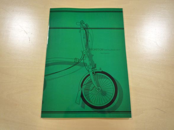 色も迷いました。シルバーか、グリーンか?で、結局「真っ黒」にしてしまいました。でもやっぱり鍵は、ハデな色の方がいいみたいですね。しかもコレ以外と長さが短い!これじゃ〜路上の固定されたどっかと共締め出来まへ〜ん!いつも買って使い始めてから後悔しております。ぬ〜。最近出たとある雑誌によれば、ワイヤーロックも太さに関係なく、チェーンロックも、人気のオーストラリアが誇る工業デザイナー集団、KNOG(ノグ)さんのぶにょぶにょも、いとも簡単にブチッと切られてしまうらしいのです。そして更に、あの狙ってた軽量コンパクトなフォールディングロックに至ってはごく簡単に素手で破壊出来るとの事。結局信頼性のあるのは、激重のU字型だけみたい。まぁ長時間駐輪しない事が一番の防衛策なのでしょうが、BROMPTONの鍵的問題は、デザイン的、重量的、セキュリティー能力的に、まだまだ悩み続けそうなんです。最後に和田サイさんの通販で買った「BROMPTON Starting Book 2011」を眺めながら、銀座3号の更なる使い勝手向上を夢想するのでした。