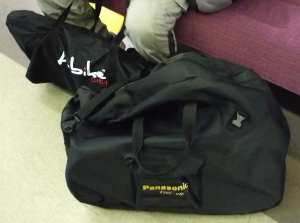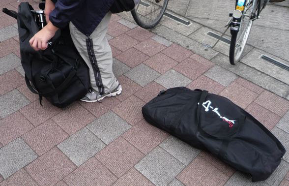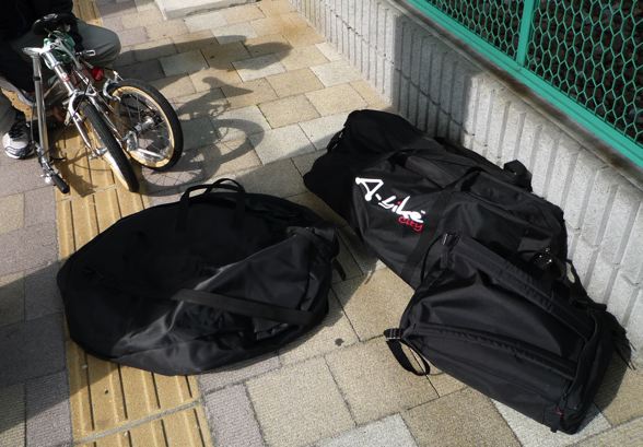 スタート地点に到着。輪行バッグから出す。ちなみに今回はどちらも純正専用バッグです。
