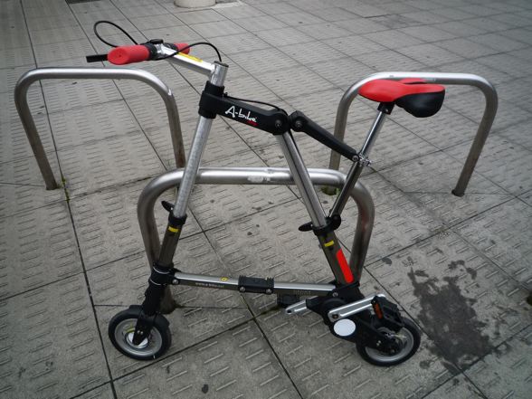 でもA-bike cityは、用途的に緊急短距離移動用や短距離通勤用もしくは海外ちょいのり用としては最高ですね。この折りたたみ機構とデザインがいいんだよなぁ〜。ミッションインポッシブル気分に少しだけなれます。イヒヒ。