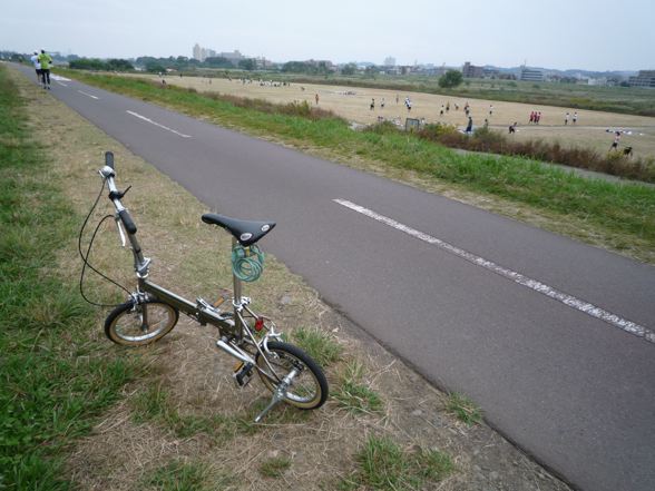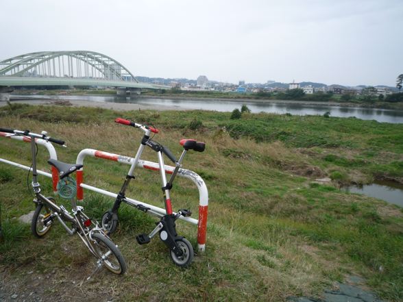 関戸橋付近から多摩川沿いをポタります。僕のA-bike cityは最初は気持ち良く走っていたのですが走行開始20分位で段々キツくなってきました!共にシングルギアではありますが、やはり14インチと8インチの差でしょうか。ぬ〜。段差越えには当然神経使います。途中ミスターの趣味の世界に御立ちより。