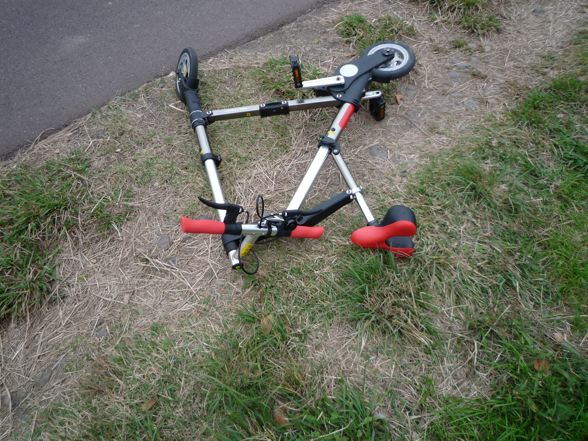 A-bike cityは、デザイン、重量、携帯性は最高なのですが、長距離走るのは辛過ぎます。ディアマイフレンドさんのフルチューンバージョンでこれですから、ノーマルはどんな感じなのでしょうか?6インチなんて更にどうだったんでしょう?あと実は折りたたみと展開にも少し苦労しました。YouTube動画みたいにスムーズに出来るまでには少し練習が必要です。