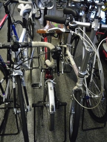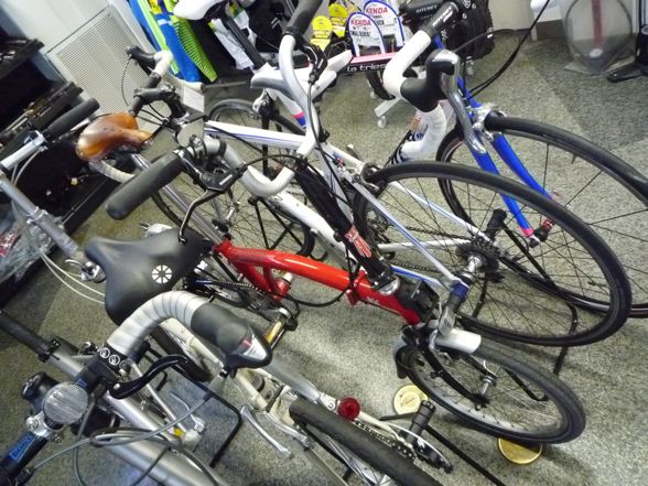 最強の折りたたみ自転車BROMPTON。その折りたたみ機構の素晴らしさや実用性から大人気な訳ですが、よく出来ているだけにお値段はチトお高いのです。しかし!ご予算のないお方も諦めては行けません!中古とゆ〜手もあるのです。仕様変更の極めて少ないBROMPTONは基本的に中古でも同じで満足出来ちゃいます。その代わり、長く使われて愛されている事が多くコンパクトで場所をとらない事などから極めて中古の球数が少ないみたいです。早速、中古自転車チェーン展開で快進撃のサイクリーさんにお邪魔してみました。あった〜!